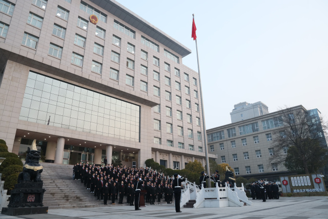 郑州高新区法院举行新年升旗..
