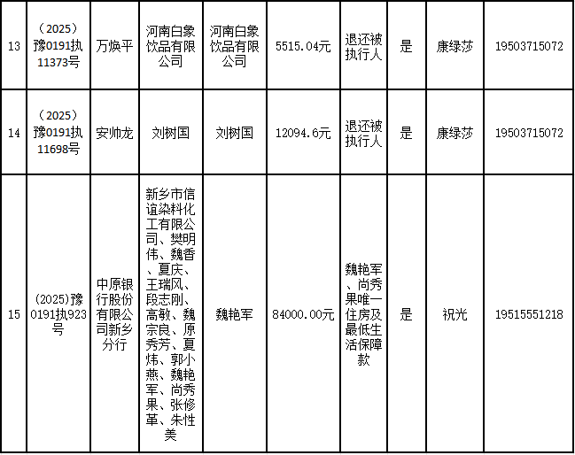 为进一步严格管理执行案款发放,强化执行案款管理,依法维护当事人合法权益,防范廉政风险,确保执行案款发放规范有序、及时高效。根据《最高人民法院关于执行款物管理工作的规定》及《最高人民法院关于进一步规范人民法院执行案款收发的通知》等相关规定,现对以下执行案款发放事宜进行公示,公示期为3个自然日(2025年11月3日—2025年11月5日),案件当事人或者其他利害关系人如有异议应当在公示期内提出并提交相关证据材料,公示期满无异的,本院将按照执行案款管理的相关规定办理发放手续。