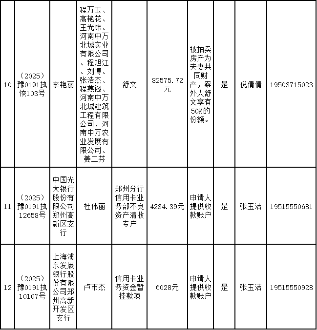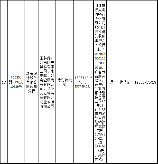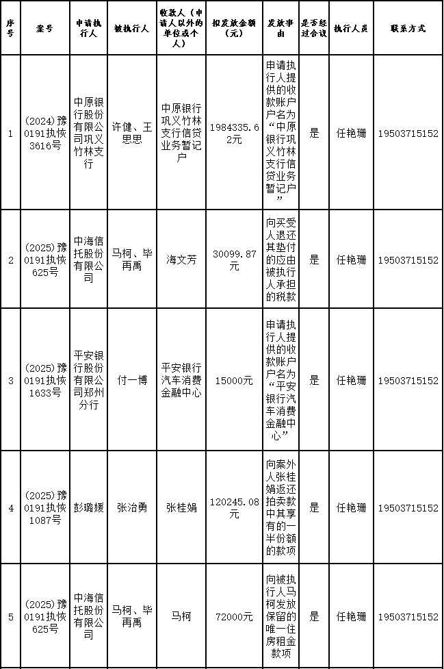 为进一步严格管理执行案款发放,强化执行案款管理,依法维护当事人合法权益,防范廉政风险,确保执行案款发放规范有序、及时高效。根据《最高人民法院关于执行款物管理工作的规定》及《最高人民法院关于进一步规范人民法院执行案款收发的通知》等相关规定,现对以下执行案款发放事宜进行公示,公示期为3个自然日(2025年11月24日—2025年11月26日),案件当事人或者其他利害关系人如有异议应当在公示期内提出并提交相关证据材料,公示期满无异的,本院将按照执行案款管理的相关规定办理发放手续。