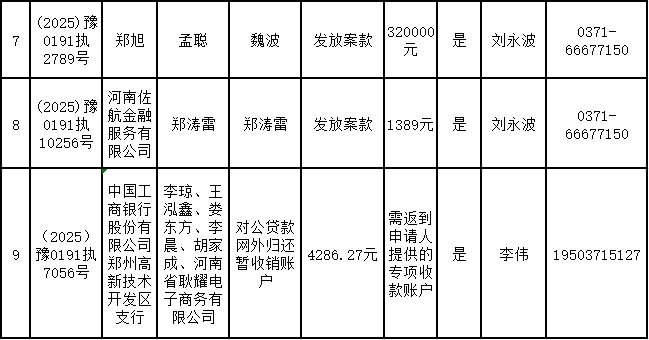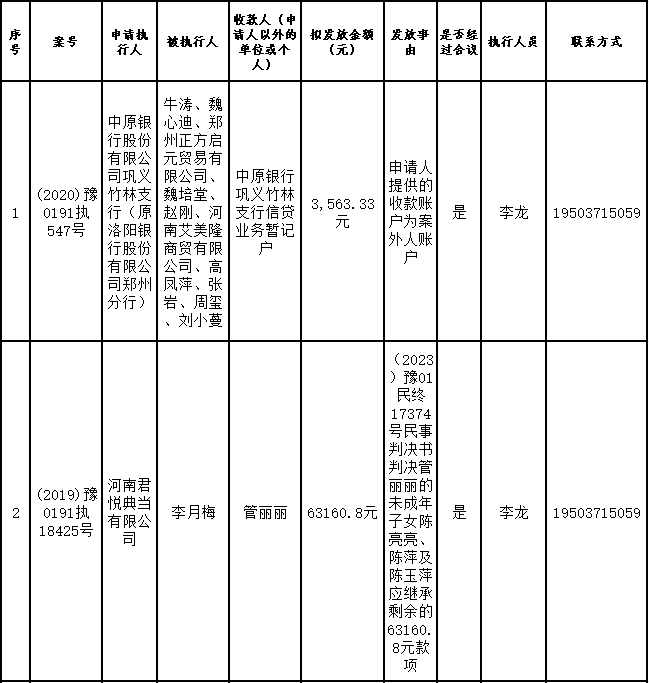 为进一步严格管理执行案款发放,强化执行案款管理,依法维护当事人合法权益,防范廉政风险,确保执行案款发放规范有序、及时高效。根据《最高人民法院关于执行款物管理工作的规定》及《最高人民法院关于进一步规范人民法院执行案款收发的通知》等相关规定,现对以下执行案款发放事宜进行公示,公示期为3个自然日(2025年12月5日—2025年12月7日),案件当事人或者其他利害关系人如有异议应当在公示期内提出并提交相关证据材料,公示期满无异的,本院将按照执行案款管理的相关规定办理发放手续。