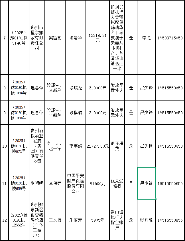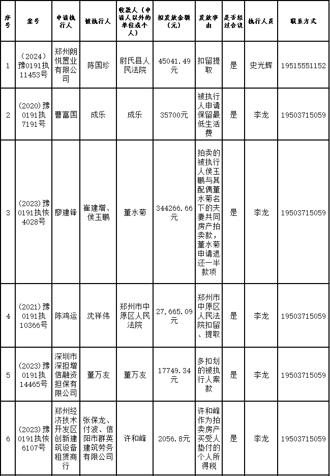 为进一步严格管理执行案款发放,强化执行案款管理,依法维护当事人合法权益,防范廉政风险,确保执行案款发放规范有序、及时高效。根据《最高人民法院关于执行款物管理工作的规定》及《最高人民法院关于进一步规范人民法院执行案款收发的通知》等相关规定,现对以下执行案款发放事宜进行公示,公示期为3个自然日(2025年12月18日—2025年12月20日),案件当事人或者其他利害关系人如有异议应当在公示期内提出并提交相关证据材料,公示期满无异的,本院将按照执行案款管理的相关规定办理发放手续。