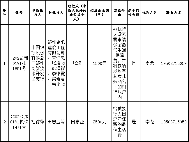 为进一步严格管理执行案款发放,强化执行案款管理,依法维护当事人合法权益,防范廉政风险,确保执行案款发放规范有序、及时高效。根据《最高人民法院关于执行款物管理工作的规定》及《最高人民法院关于进一步规范人民法院执行案款收发的通知》等相关规定,现对以下执行案款发放事宜进行公示,公示期为3个自然日(2025年12月31日—2026年1月2日),案件当事人或者其他利害关系人如有异议应当在公示期内提出并提交相关证据材料,公示期满无异的,本院将按照执行案款管理的相关规定办理发放手续。