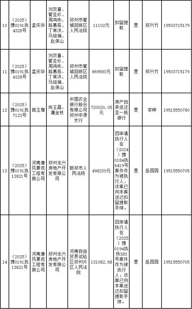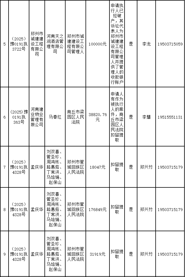 为进一步严格管理执行案款发放,强化执行案款管理,依法维护当事人合法权益,防范廉政风险,确保执行案款发放规范有序、及时高效。根据《最高人民法院关于执行款物管理工作的规定》及《最高人民法院关于进一步规范人民法院执行案款收发的通知》等相关规定,现对以下执行案款发放事宜进行公示,公示期为3个自然日(2026年1月9日—2026年1月11日),案件当事人或者其他利害关系人如有异议应当在公示期内提出并提交相关证据材料,公示期满无异的,本院将按照执行案款管理的相关规定办理发放手续。