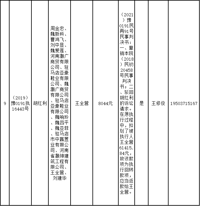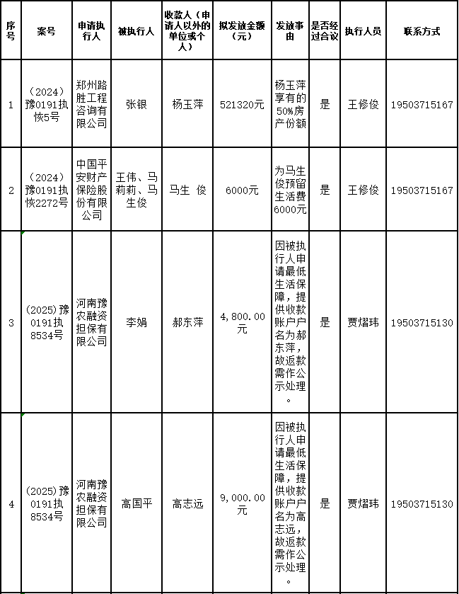 为进一步严格管理执行案款发放,强化执行案款管理,依法维护当事人合法权益,防范廉政风险,确保执行案款发放规范有序、及时高效。根据《最高人民法院关于执行款物管理工作的规定》及《最高人民法院关于进一步规范人民法院执行案款收发的通知》等相关规定,现对以下执行案款发放事宜进行公示,公示期为3个自然日(2026年1月16日—2026年1月18日),案件当事人或者其他利害关系人如有异议应当在公示期内提出并提交相关证据材料,公示期满无异的,本院将按照执行案款管理的相关规定办理发放手续。