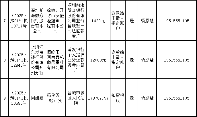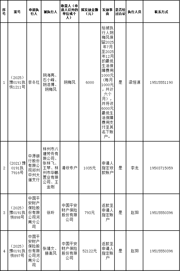 为进一步严格管理执行案款发放,强化执行案款管理,依法维护当事人合法权益,防范廉政风险,确保执行案款发放规范有序、及时高效。根据《最高人民法院关于执行款物管理工作的规定》及《最高人民法院关于进一步规范人民法院执行案款收发的通知》等相关规定,现对以下执行案款发放事宜进行公示,公示期为3个自然日(2026年4月7日—2026年4月9日),案件当事人或者其他利害关系人如有异议应当在公示期内提出并提交相关证据材料,公示期满无异的,本院将按照执行案款管理的相关规定办理发放手续。