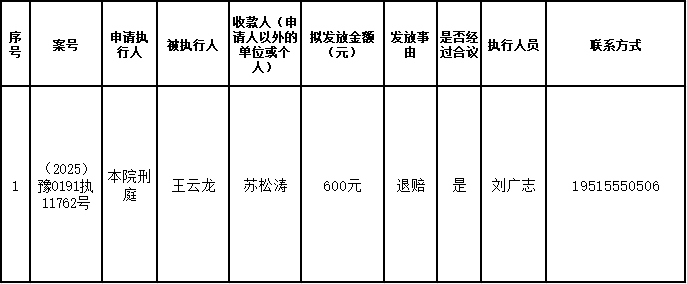 为进一步严格管理执行案款发放,强化执行案款管理,依法维护当事人合法权益,防范廉政风险,确保执行案款发放规范有序、及时高效。根据《最高人民法院关于执行款物管理工作的规定》及《最高人民法院关于进一步规范人民法院执行案款收发的通知》等相关规定,现对以下执行案款发放事宜进行公示,公示期为3个自然日(2026年4月14日—2026年4月16日),案件当事人或者其他利害关系人如有异议应当在公示期内提出并提交相关证据材料,公示期满无异的,本院将按照执行案款管理的相关规定办理发放手续。
