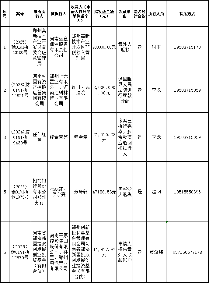 郑州高新技术产业开发区人民法院执行局